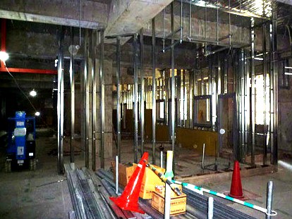 LGS(軽量鉄骨)による下地工事とともに、