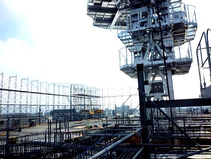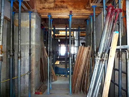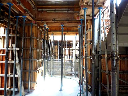 コンクリートの養生中で、躯体サポート、型枠を設置しています。