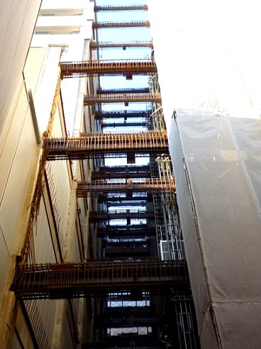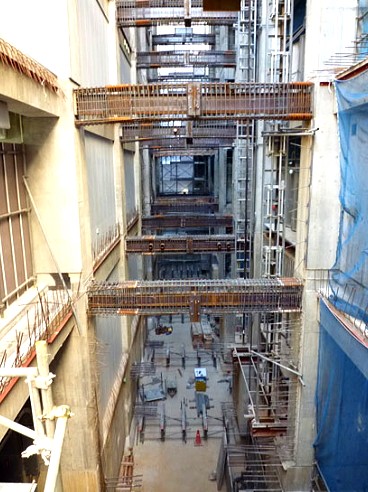 地下1階から10階までの大梁が接合され、
