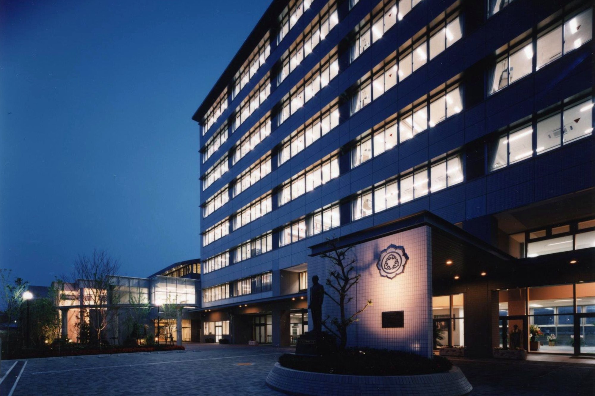 整然とした水平ラインを持つ校舎は、落ち着きと品位を備えた学びの器として計画し、一方で、エントランスに設けた大きな門型フレームやピロティ空間は、外部に対して開かれた構えをつくり、学校と社会とのつながりを静かに表現。